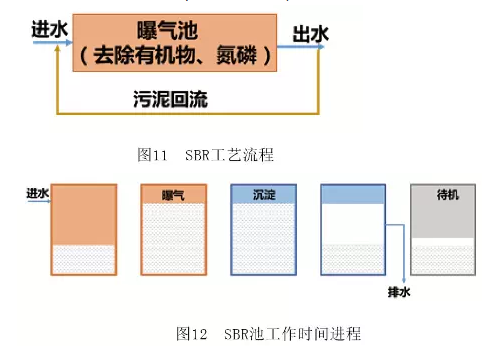 序批式活性污泥法(SBR)工藝是在時間上將厭氧段與好氧段進行分割。20 世紀70 年代初由美國Irvine公司開發。它在流程上只有一個基本單元,集調節池、曝氣池和二沉池的功能于一池,進行水質水量調節、微生物降解有機物和固液分離等。經典 SBR 反應器的運行過程為:進水→曝氣→沉淀→潷水→待機(如圖11、 12)。